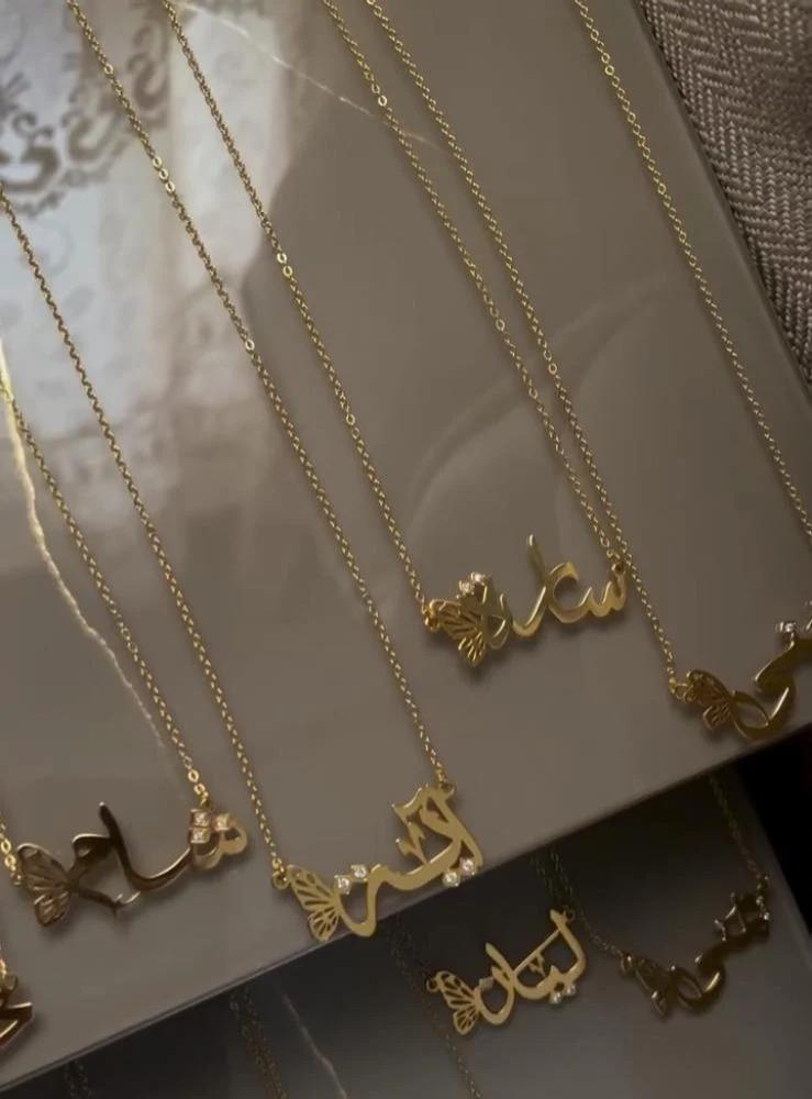 سلسال بالاسم انيقمع فراشة زركون فخامةتصميم بالاسم عربي أو إنجليزيمتوفرلونين فضي وذهبيضمان الون من لمسة وقتتأتي بعلبه فاخره وكيس عليها شعار لمسة وقت