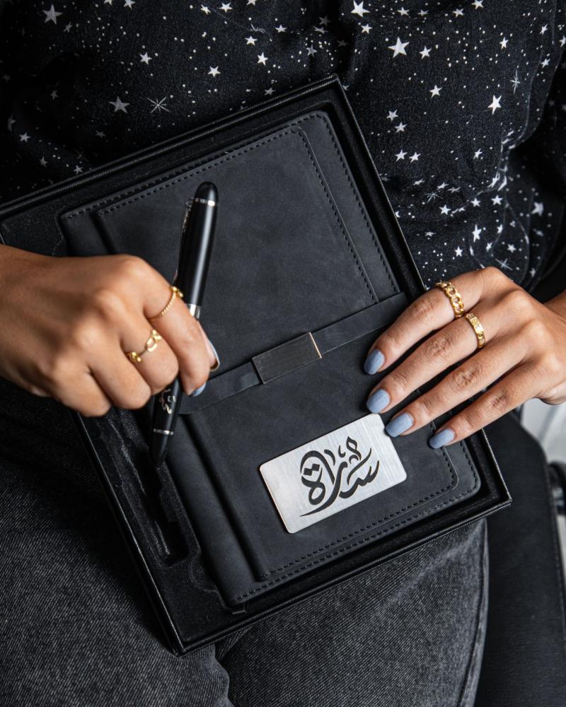 اسعر شامل الضريبهبكج بالاسم بلمسة شخصية..دفترجلدفاخرمع قلم ملكي أنيق......مومجرد بكج هذيه قطع تعبرعن تميزك