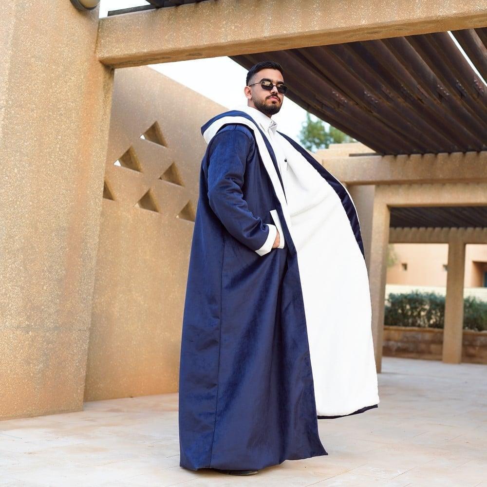 مصنوعة من قماش الجوخ الفاخر لون كحلي /سكري لون الشال سكري